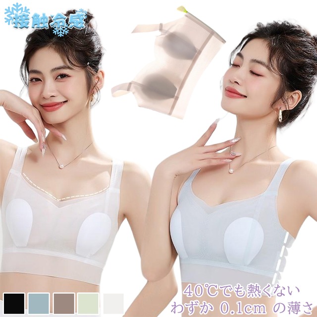 接触冷感 ブラジャー 涼しい 夏ブラ 大きいサイズ クール 育乳 吸水速乾 下着 インナー 冷感 ノンワイヤー 夜用 暑さ対策 脇高 ナイトブラ 軽量 夏用 痛くない 締め付けない 軽い 極薄 カップ ウサギ耳 胸小さく クールシルク シームレス 無地 美背