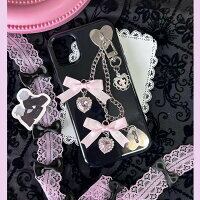 地雷系&量産型女子にぴったりの大人可愛いスマホケースが登場!ブラックを基調にしたハート&リボンの組み合わせで、甘さとクールさを兼ね備えた魅力的なデザイン♪