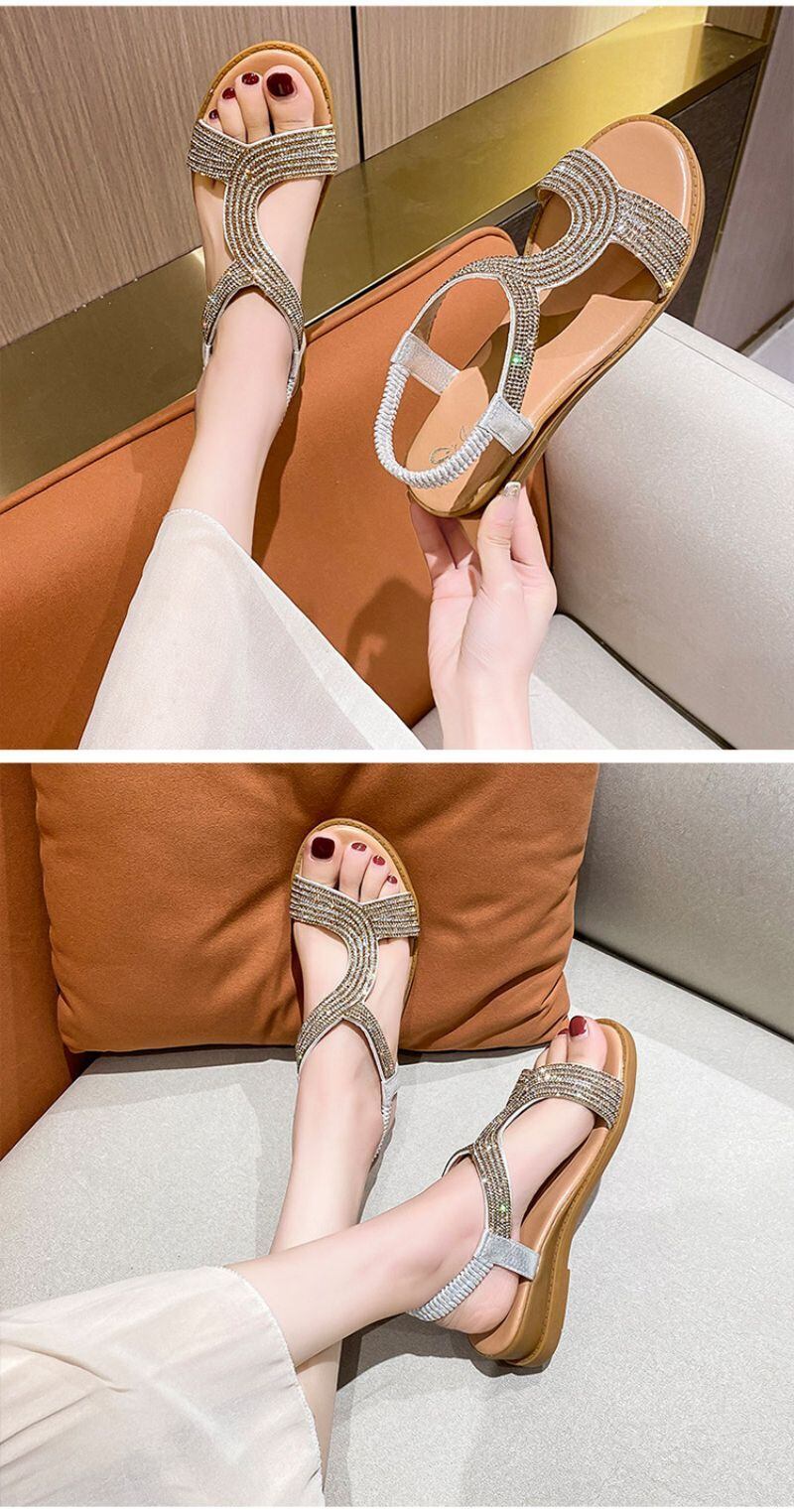 夏 靴 レディース サンダル キラキラ おしゃれ 靴 サンダル ビーチサンダル 弾性バンド ぺたんこ 歩きやすい 女性用サンダル 歩きやすい 滑り止め 軽便 快適 カジュアル 凉鞋女 履きやすい 疲れない サンダル | THE TNK-SHOP