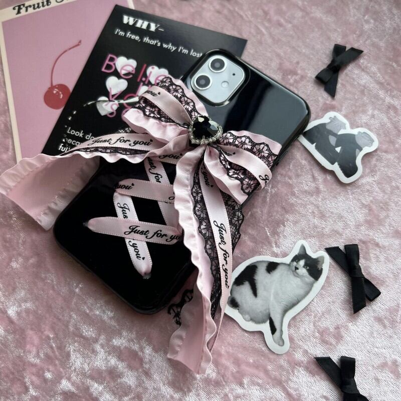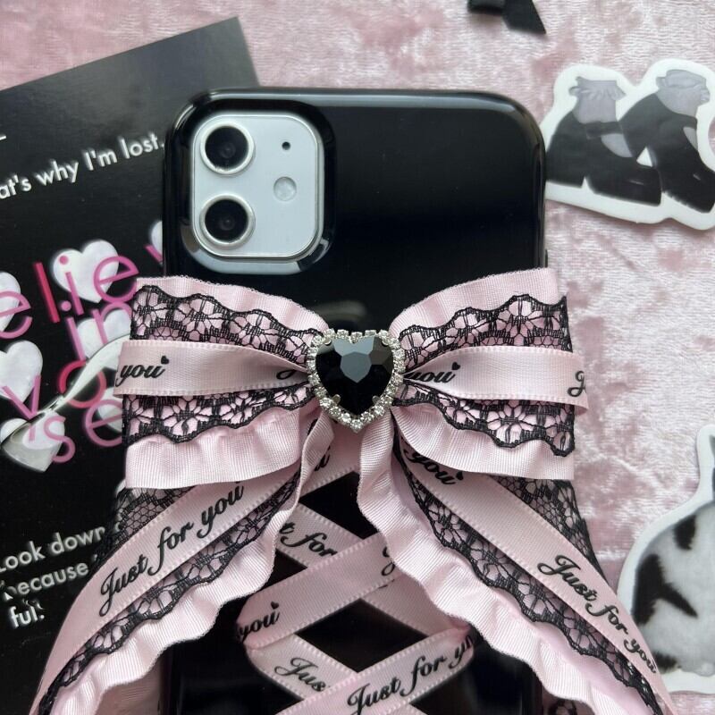 地雷系&量産型女子にぴったりの大人可愛いスマホケースが登場!ブラックを基調にしたハート&リボンの組み合わせで、甘さとクールさを兼ね備えた魅力的なデザイン♪