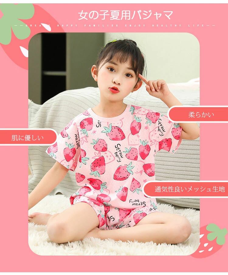 パジャマ キッズ 半袖 コットン メッシュ パジャマ ベビー 女の子 男の子 上下セット かわいい 猫柄 イチゴ パジャマ セットアップ 子供服 ベビー 子供 夏 ルームウェア 上下 かわいい 綿 おしゃれ 100cm 110cm 120cm 130cm 140cm 150cm | THE TNK-SHOP