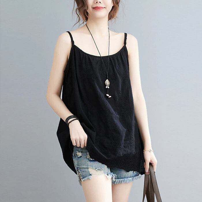 レディース キャミソール レース かわいい 大きいサイズキャミソール キャミソール ゆったり ロング エスニック風 体型カバー ナチュラル 着痩せ 夏ワンピ フェミニン おしゃれ 森ガール 復古風 カジュアル 通勤 二次会 丸ネック ノースリーブ 不規則裾刺繍 | THE TNK-SHOP