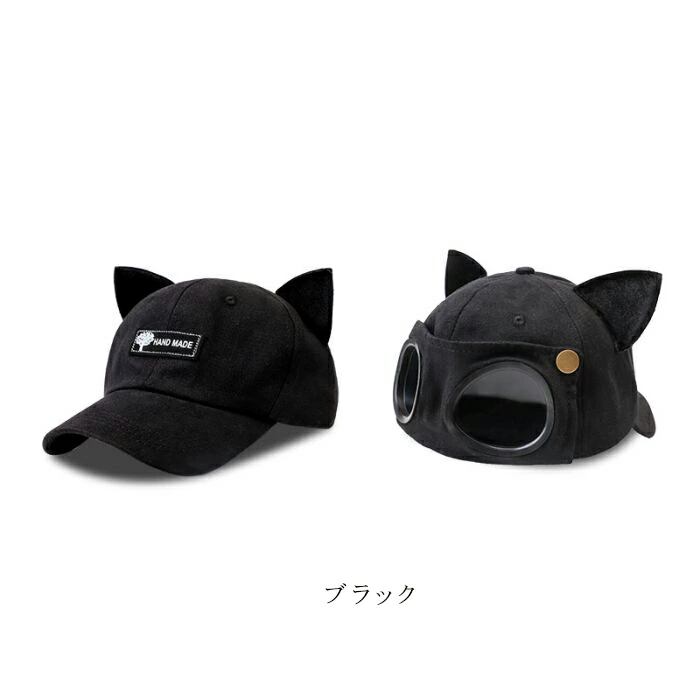 「デニム素材の可愛い 猫耳 眼鏡 キャップ。」