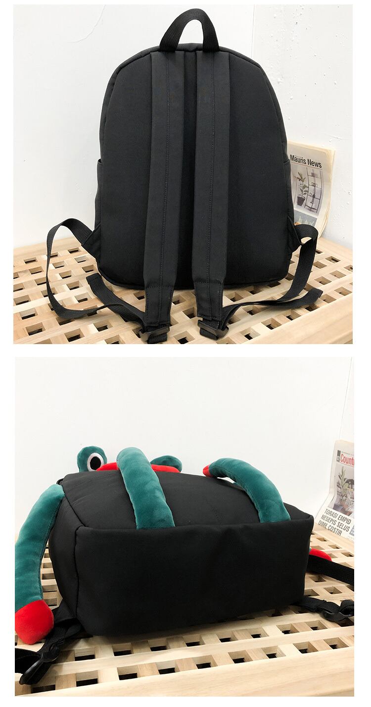 カエルのバックパックは、大きな目、セクシーな赤い唇、長い手足など、本物のカエルの特徴を備えており、大きなジッパーポケットが1つ、フロントポケットが2つ、サイドポケットが2つ付いています。