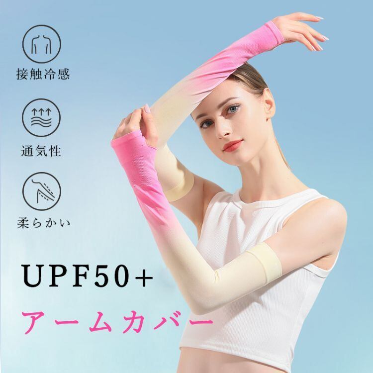 ひんやり涼しい冷感アームカバー、接触冷感で涼しく快適です。