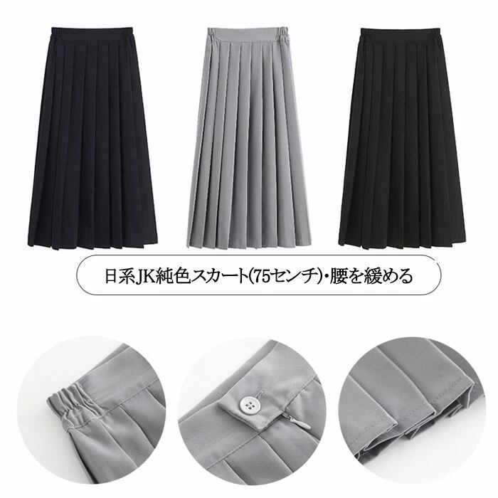 送料無料 スクールスカート プリーツスカート JK制服 スカート XS S M L 制服スカート XL 2XL 3XL 4XL 5XL セーラー服 ロングスカート 学生服 コスプレ コスチューム 高校生 学生 無地 ブラック ネイビー グレー 75cm 60cm 42cm | THE TNK-SHOP