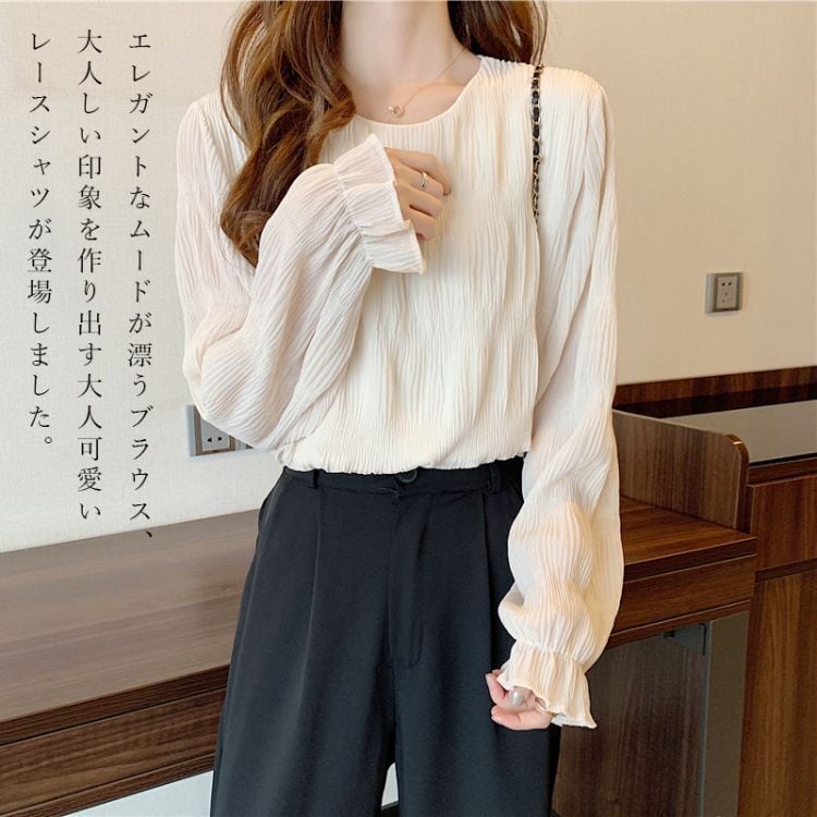 エレガントなムードが漂うブラウス、大人しい印象を作り出す大人可愛いレースシャツが登場しました。無地で綺麗なデザインで飽きの来ないベーシックスタイルに
