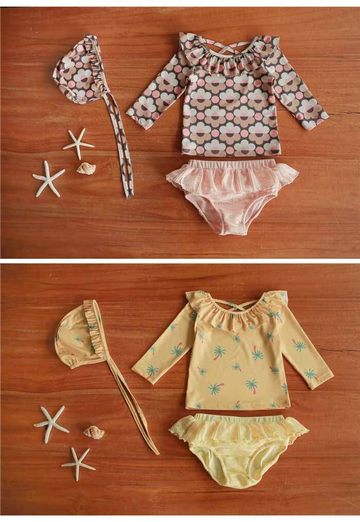 子供水着 ラッシュガード 水着 3点セット 花柄 長袖 ベビー ラッシュガード水着 長袖 セパレート ベビー水着 花柄 キッズ水着 子供水着 女の子水着 紫外線防止 UVカット スイミング 幼稚園 子供 85 90 100 110 120 130 135 | THE TNK-SHOP