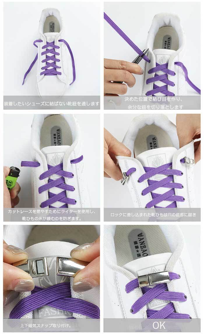 靴紐 結ばない 靴ひも シューレース 磁石 くつひも ゴム 紐 ヒモ 伸びる靴紐 ほどけない ストレッチ 脱ぎ履き ハイカット 大人 子供 スニーカー コンバース 楽々 マグネット カプセル バックル レースロック ワンタッチ 無地 シンプル | THE TNK-SHOP