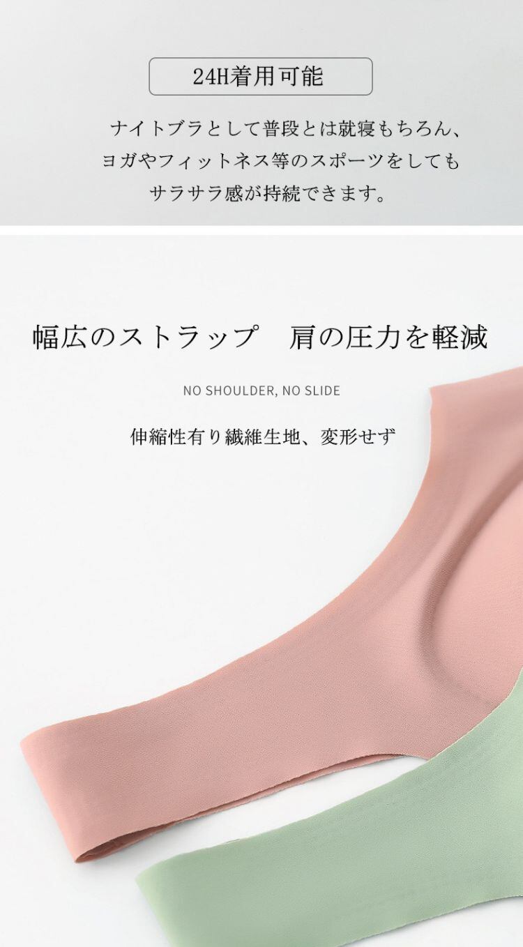ノンワイヤーで締め付けないのでお肌に優しい素材だから通気性が良く、肌ざわりの良好。ソフトで通気性、伸縮性に優れ、優しい着用感でとっても楽ちんな着け心地です。