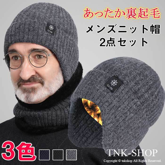 メンズ ニット 帽子 耳あて付 ネックウォーマーセット ニット帽 耳あて ニットキャップ 防寒 裏起毛 メンズ 帽子 ニット 秋冬 裏ボア 暖かい あったか 暖かい 通気性 保温性 防寒対策 寒さ対策 アウトドア- 男性 誕生日 父の日 ギフト プレゼント | THE TNK-SHOP