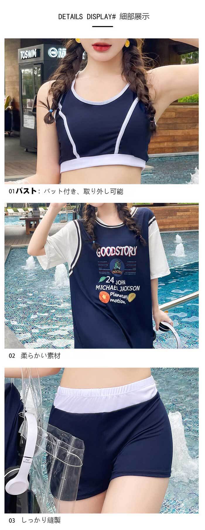 水着 レディース 体型カバー ラッシュガード 水着 レディース ビキニ 水着 3点セット フィットネス水着 レディース セパレート 体型カバー水着 ママ水着 半袖シャツ ショートパンツ 20代 30代 スイムウェア 海水浴 UV対策 日焼け防止 | THE TNK-SHOP