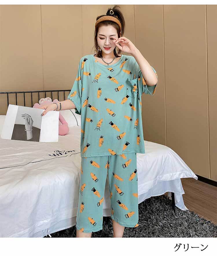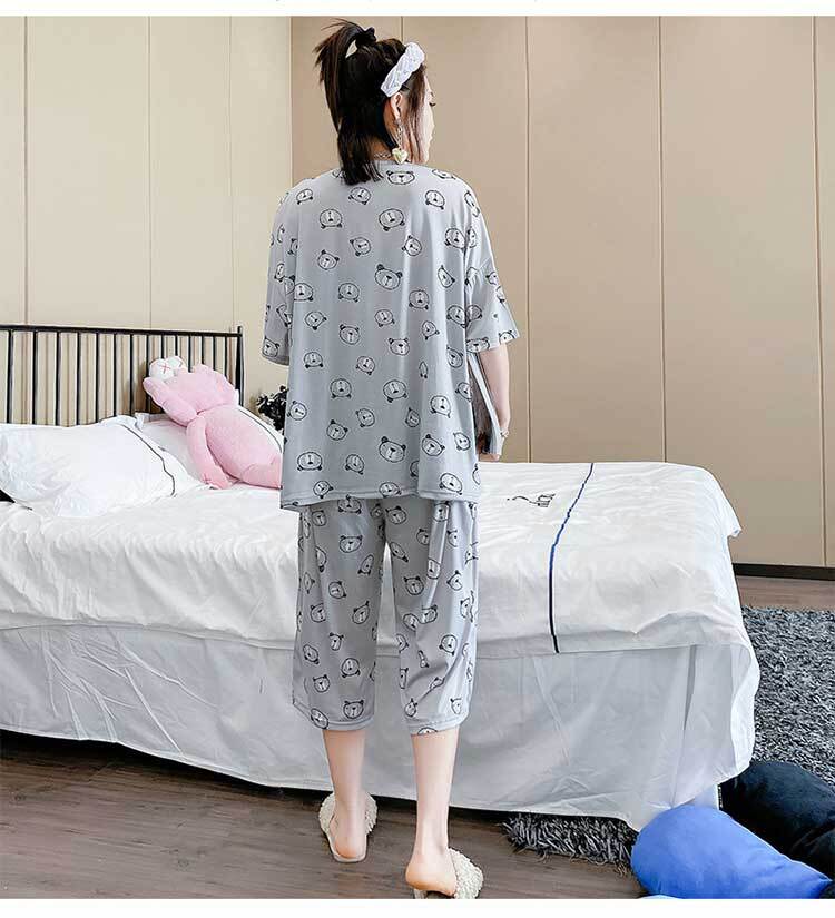 【送料無料】パジャマ レディース ルームウェア 上下セット 大きいサイズ 大きめ 半袖 夏 Tシャツ 七分パンツ ロングパンツ セットアップ 2点セット レディース パジャマ 快適 ゆったり リラックス ナイトウェア 部屋着 寝間着 可愛い プレゼント 母の日 熊 グレー | THE TNK-SHOP