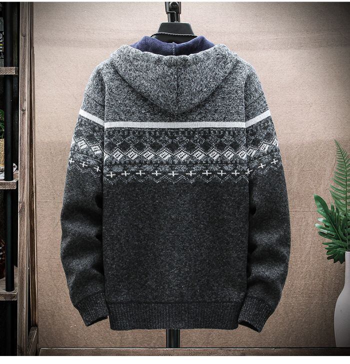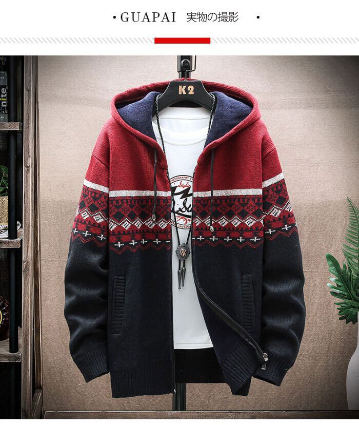 パーカー メンズ 大きめ オルテガ柄 メンズ ニット パーカー あったか フード付き ジップアップ セーター カーディガン 秋 冬 スウェット 裹起毛 トップス 長袖 アウター ファッション ジップアップ 前開き ポケット カジュ シンプル 大人 おしゃれ ギフト プレゼント | THE TNK-SHOP