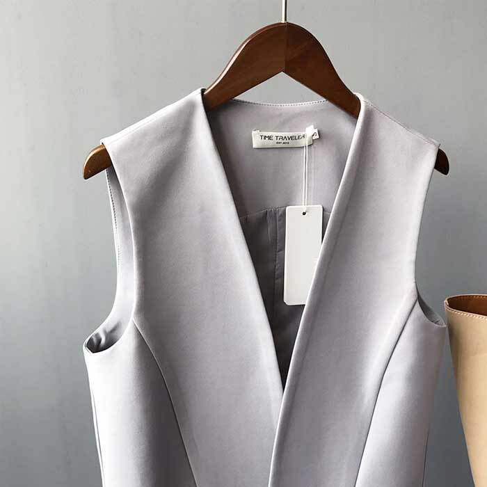 レディース ロングジレ ベスト コート トレンチコート ジレンチ トップス 春 秋 ロング丈 トレンチベストアウターウエア 羽織 カーディガン レディース 大きいサイズ カーデ テーラード 無地 カジュアル 着痩せ ポケット付き 黒 グレー | THE TNK-SHOP