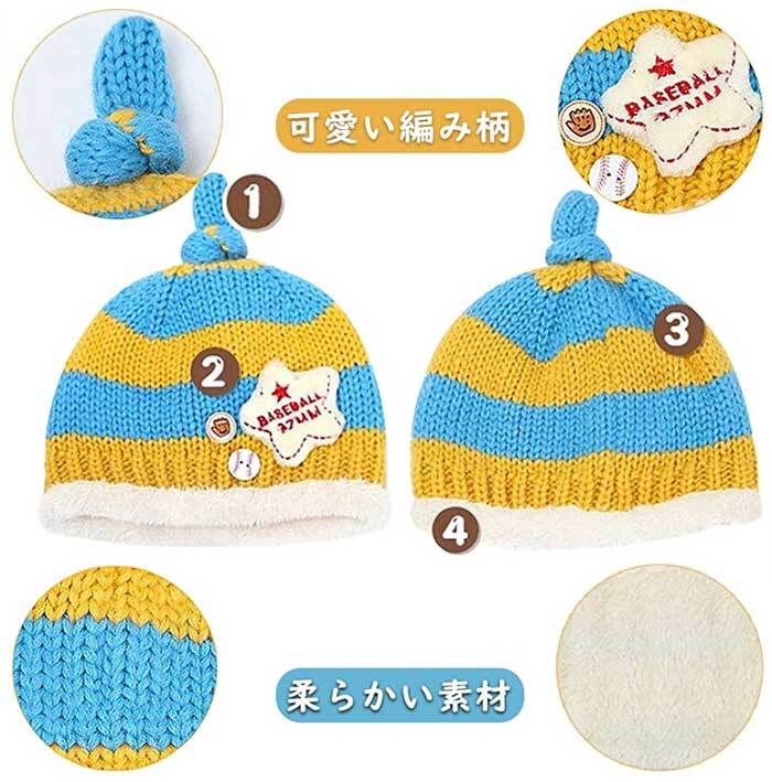 キュートと結んとんがりデザインで、帽子の上部は4ストランド織りの収縮を採用しており、子供の頭の形にピッタリ、より快適に着用します。