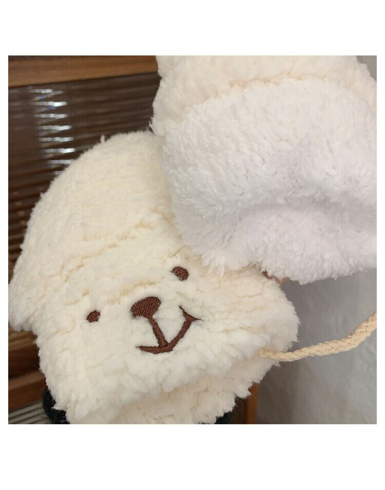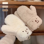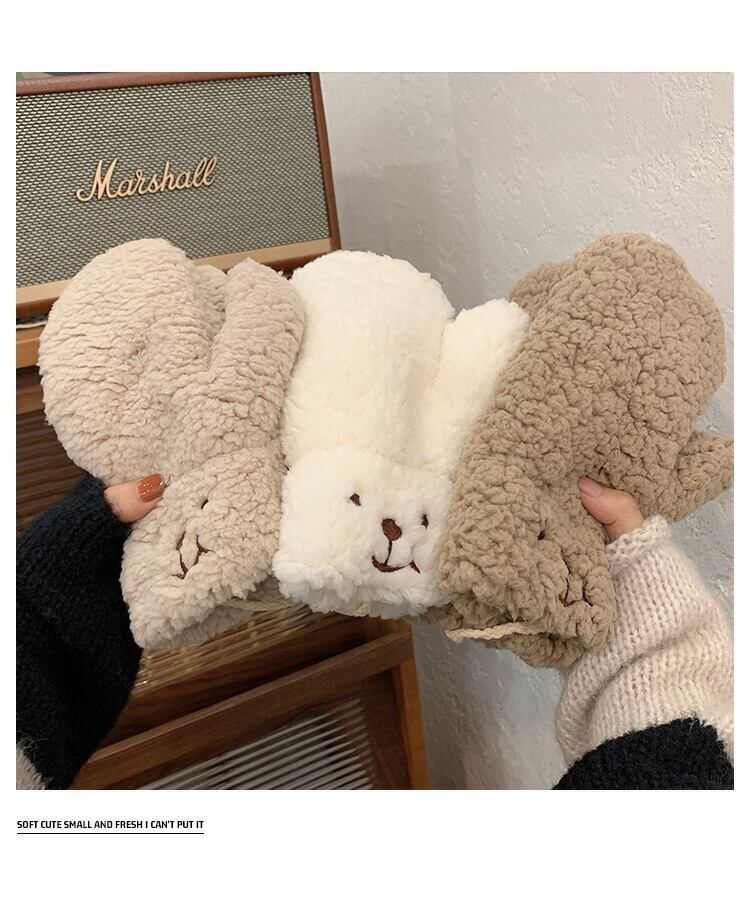 【送料無料】手袋 ミトン レディース ボア もこもこ かわいい 冬 秋冬 小物 ニット 指なし グローブ クマ ハンドウォーマー あったかい 暖かい 柔らかい 保温 おしゃれ 裏ボア 防寒 自転車 通学 通勤 学生 中学生 高校生 誕生日 プレゼント | THE TNK-SHOP