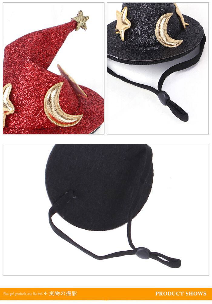 調節可能なゴムバンド: ミニかわいいペットハットはあごのゴムバンドのデザインで、調節可能なゴムバンドのデザインにより、この猫魔女帽子は猫や犬の頭に簡単に着用でき、脱落することはありません.