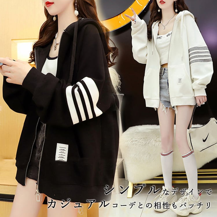 【送料無料】パーカー レディース スエット ジップパーカー 秋冬 トップス 無地 シンプル 長袖 フード 部屋着 ルームウェア おしゃれ可愛い カジュアル 秋服 秋 冬 春 前開き アウター トップス ゆったり ゆったり 大きいサイズ ママ ブラック ホワイト | THE TNK-SHOP