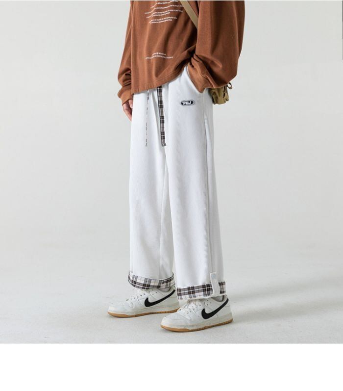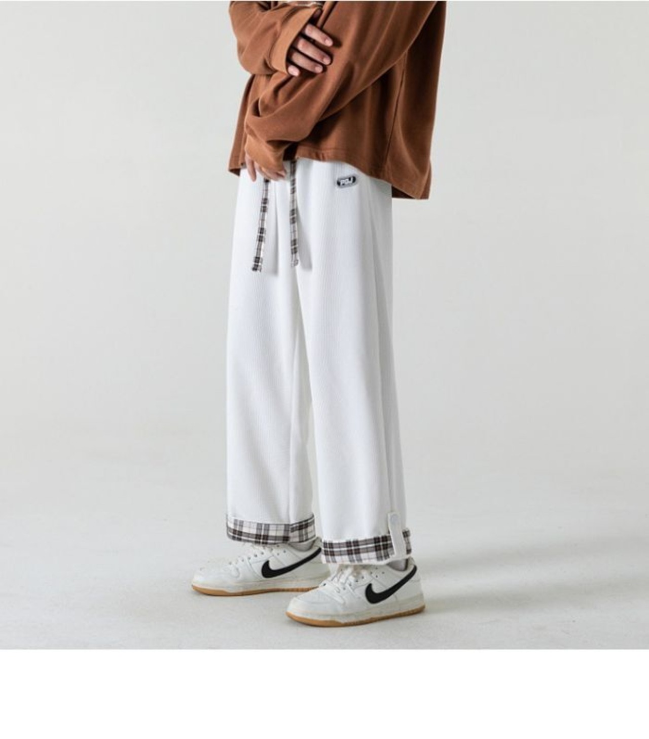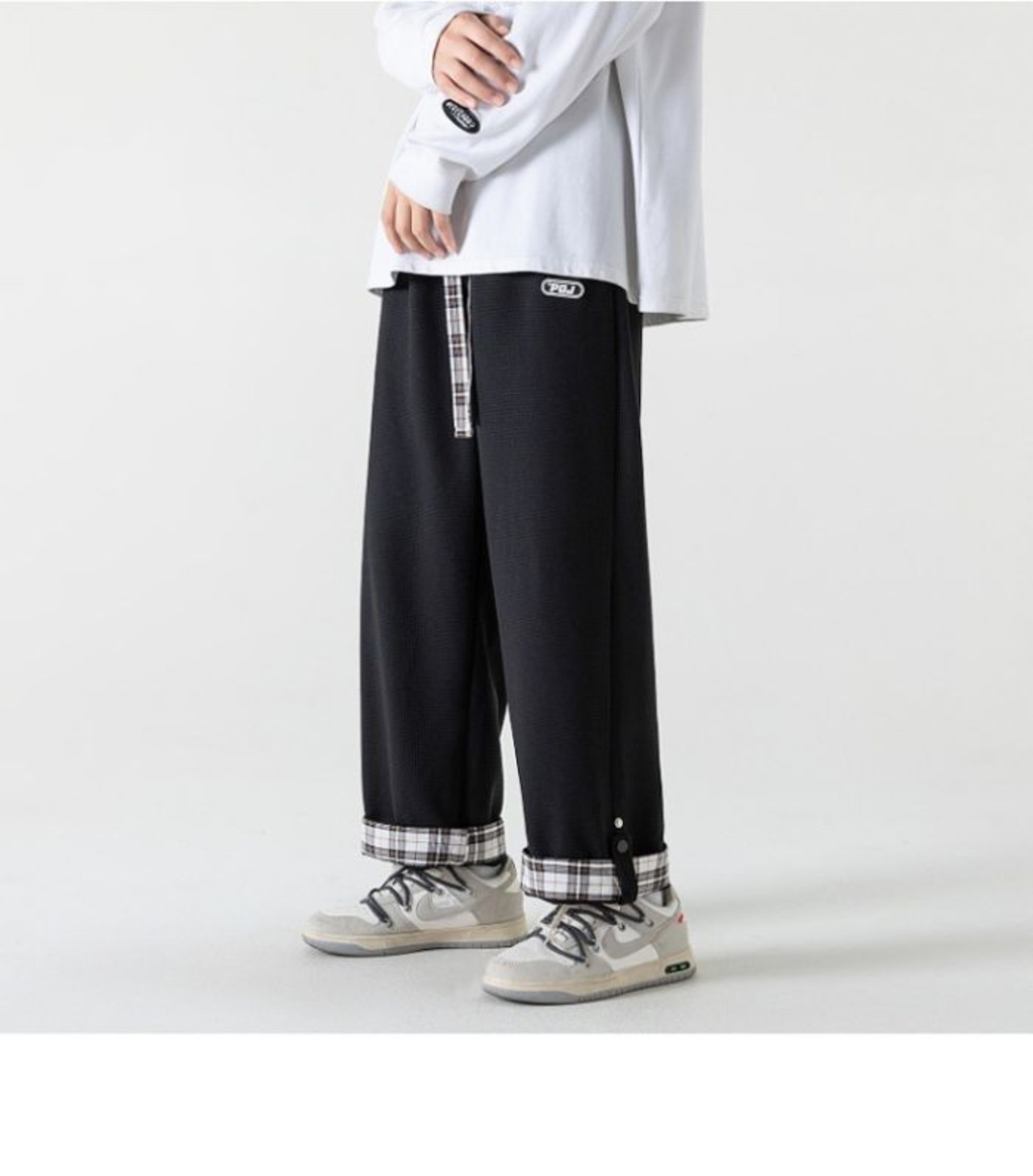 ズボンの裾に小さなグリッドを加えたデザインは、シンプルな無地に多くの魅力を加え、ダイナミックなプロセスの中でより神秘的な視覚効果を生み出しています。