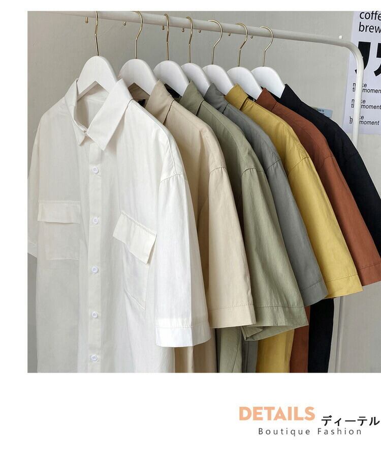 シャツ メンズ 半袖 メンズファッション 夏服 涼しい 快適 カジュアル ゆったり トップス ショート丈 春 夏 ビジネス 胸ポケット 開襟シャツ おしゃれ 無地 大きいサイズ ショートスリーブ ブラック ホワイト イエロー リゾート 夏物 父の日 | THE TNK-SHOP