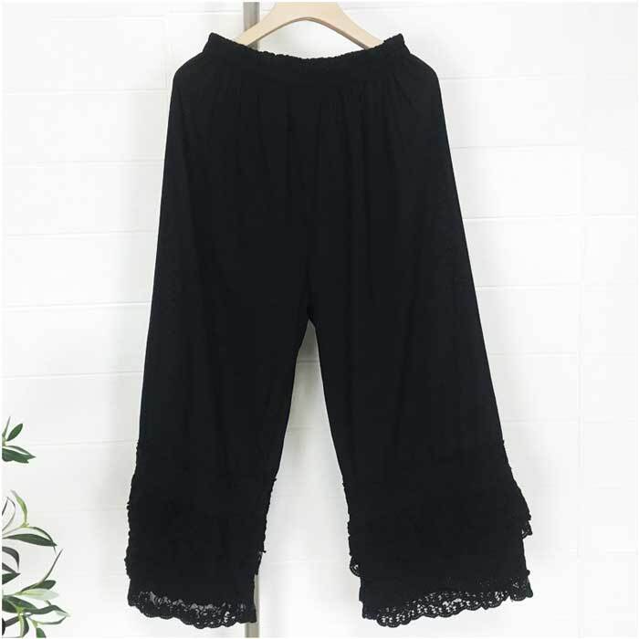 ペチコート ペチパンツ ボトムス ナチュラル シンプル 可愛い 体型カバー 重ね着 カジュアル 服 大人 ゆったり ワイドパンツ 裾レース フリル ガウチョパンツ リネン 刺繍 花柄 レース カットワーク 着痩せ 無地 手触り 肌触り スベスベ サラサラ | THE TNK-SHOP