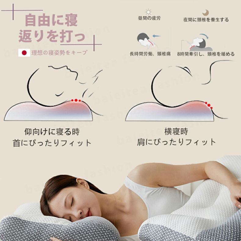 【独自の革新的枕、肩こり/首こり対策-枕】: 人間工学設計と圧力分散に優れた低反発により、体への負担を減少し、しっかりと頭、首、肩をサポートしてくれます。首や頚椎を正常な形にキープして、呼吸がスムーズに出来るほか、寝返りが軽減、いびきを軽減します。横向き・仰向け・うつ伏せ、どんな寝姿勢でもOK!