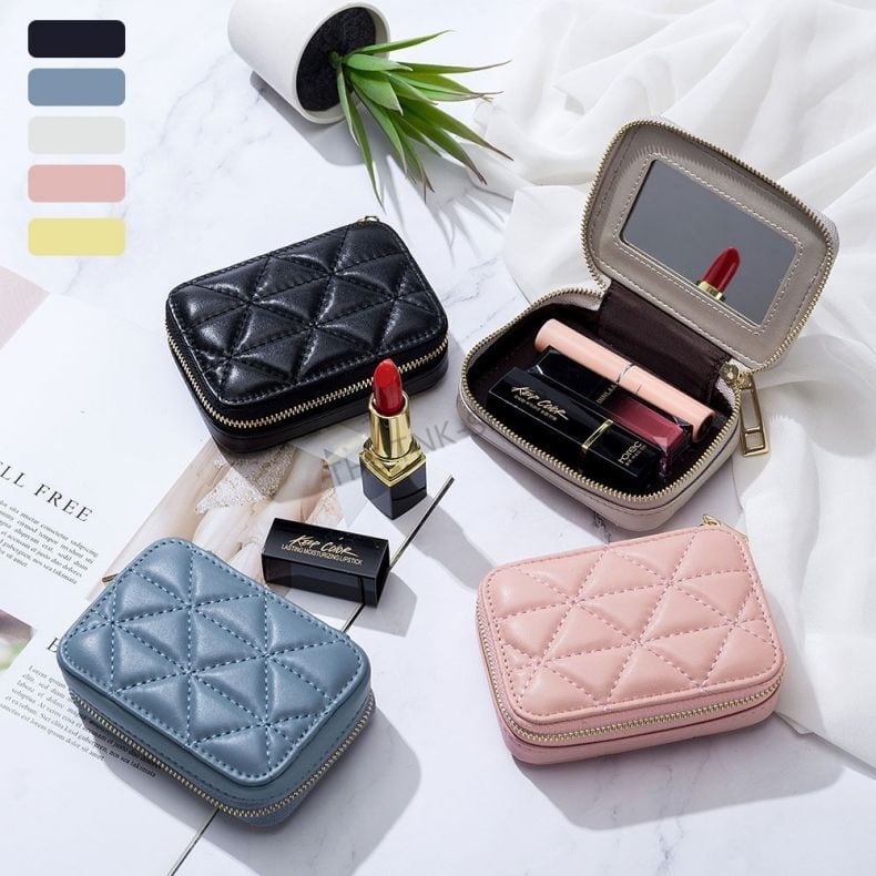 リップケース ミラー付き 口紅ケース 収納ケース 牛本革 鏡付き 化粧ポーチ 携帯 コンパクト 化粧品収納 口紅入れ アクセサリーケース 小物収納 ミニメイクポーチ 化粧ケース レザー調 高級感 エレガント おしゃれ かわいい 雑貨 お出かけ 母の日 | THE TNK-SHOP