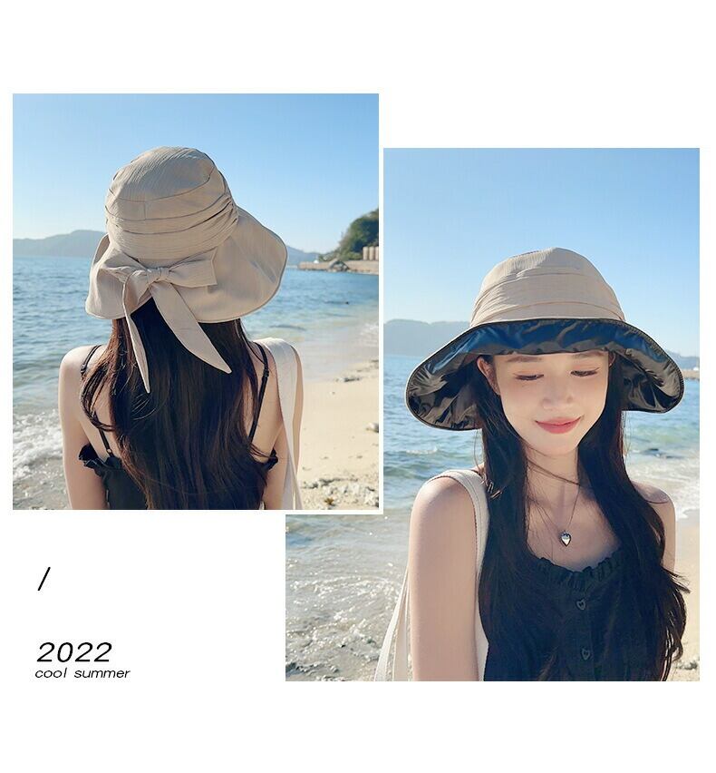 頭の形が綺麗に見えるようシルエットにこだわって作られています。帽子の後ろには大きなリボンがついていて、可愛らしさをプラスしてくれます。日焼け防止の一方で、帽子が驚きの小顔効果を発揮しています。頭に被るだけで、視覚的に小顔に見え、急なお出かけ時のスッピン隠しにも最適!