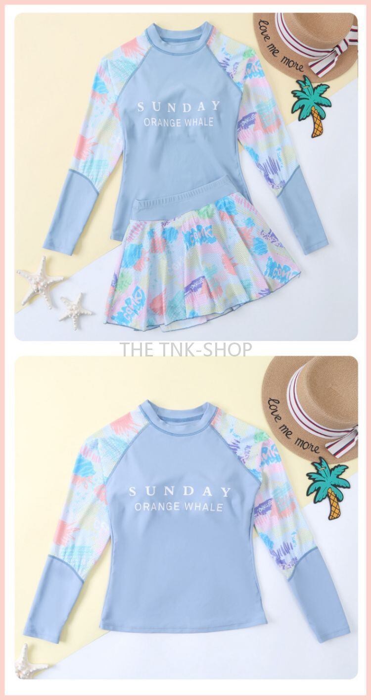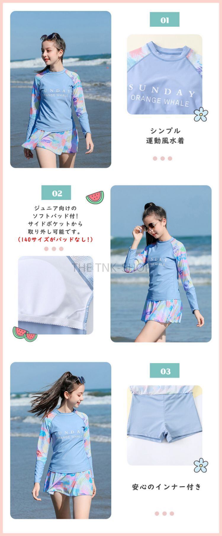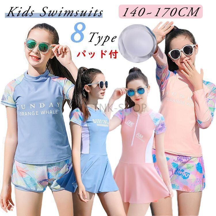 キッズ 水着 女の子 ラッシュガード 半袖 長袖 ジュニア セパレート ワンピース スクール水着 子ども用 みずぎ 子供用 スイムウェア 体型カバー プール タンキニ スポーツウエア スクール ガールズ 水泳 水遊び UV対策 パッド付き 140 150 160 165 170 重ね着風 スイミング | THE TNK-SHOP
