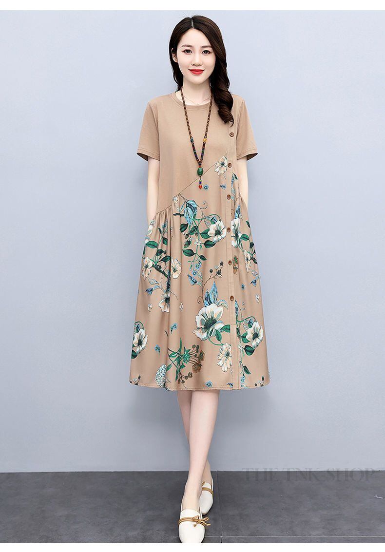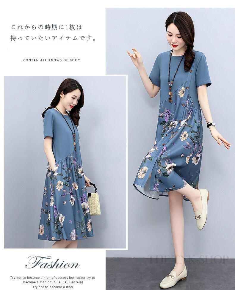 ワンピース 半袖 ミディアム丈 ワンピ ワンピース レディース 夏 ロングワンピース 花柄 膝丈 大きいサイズ ゆったり 体型カバー 涼しい きれいめ Aライン フォーマル 結婚式 パーティー ドレス カジュアル オシャレ 春夏 マキシ丈ワンピ レディース エレガント ママ 母の日 | THE TNK-SHOP