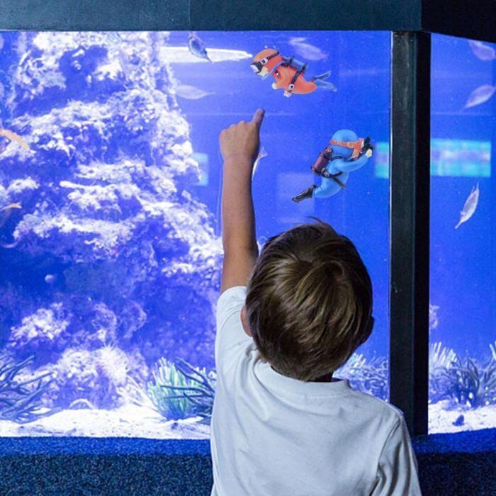 【クリエイティブデザイン】ダイバーの装飾は、自然なスタイルや楽しいアニメのキャラクターと組み合わせても、付属の浮遊球と糸をつけることにより、 ダイバーが水流に乗って水槽内を遊泳し、まるで海底探索をしているかのような世界観を演出!