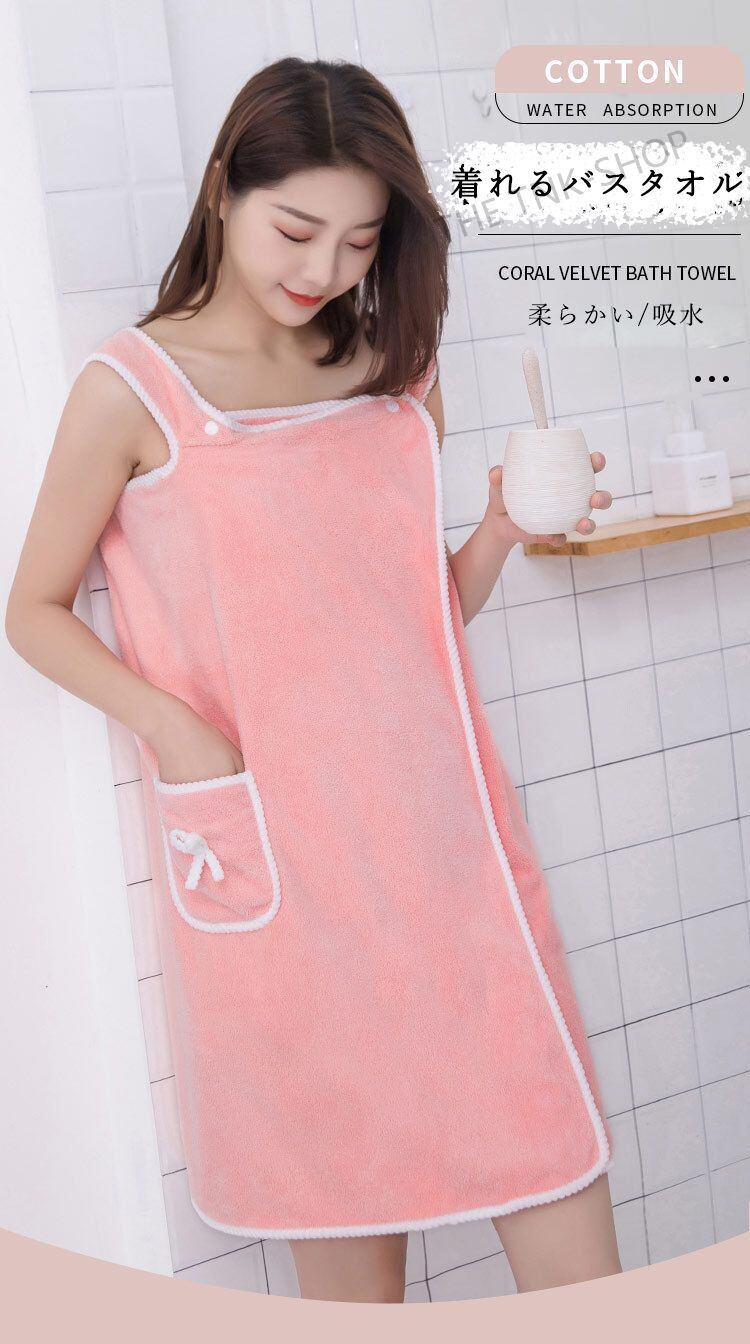 ラバスドレス バスタオル 着るバスタオル バスローブ ラップタオル 大人用 着る バスタオル バスローブ マイクロファイバー 速乾 超吸水 ポケットデザイン ゴム無し 柔らかい ふわふわ もこもこ お風呂 サウナ プール 温泉 ジム 落ちない 旅行 大判 可愛い リボン 無地 | THE TNK-SHOP