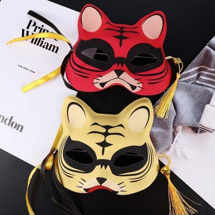 お面 タイガーマスク 仮面 半面 虎 鈴付き タッセル付き 和風 仮装 コスプレ小物 学園祭 仮面舞踏会 花火大会 ハロウィーン 撮影道具 演劇 変装グッズ 半面 4点セット 仮面 ハロウィン 妖怪マスク 夏祭り お祭り 文化祭 クリスマス 演出服 | THE TNK-SHOP