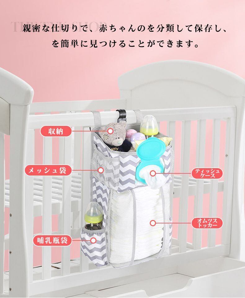 オムツストッカー 赤ちゃん用品 おむつストッカー オムツポーチ おむつ 収納 収納ボックス 掛けて使える 収納ケース 持ち運び 吊り下げ ベビーベッド 仕切り付 ベビーベッド用 オーガナイザー 新生児用 ベビーアクセサリー 小物入れ おむつ入れ | THE TNK-SHOP