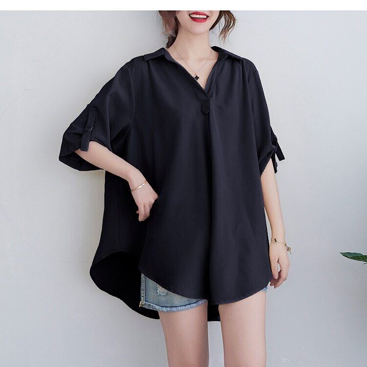 トップス Tシャツ レディース 五分袖 ブラウス レディース 春 夏 春夏 シャツ トップス リブ おしゃれ かわいい フレンチスリーブ 夏 白 黒 きれいめ 無地 通勤 ミディ丈 シャツスリーブ 薄手 ぴったり フィット 可愛い きれいめ シンプル 着痩せ 通勤 通学 ママ 母 OL | THE TNK-SHOP