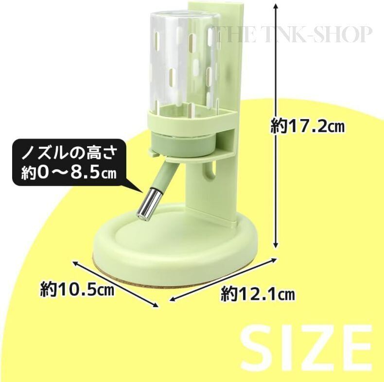 フェレット・ハムスター・ハリネズミ・チンチラ・ウサギなどの小動物に対応した自動給水器です。背面のツマミを上下にスライドさせることで、ペットに合わせた高さに調整できます。