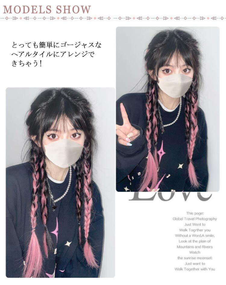 エクステ 2個セット 8本入り 三つ編み 編み込み エクステンション ツインテール ポニーテール 髪型 カラフル レディース ボリューム ウィッグ ヘアアレンジ ヒップホップ コーンロウ かつら ブレイズ カラーエクステ 2set ポニーテール エクステンション つけ毛 耐熱 | THE TNK-SHOP