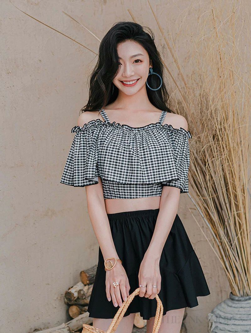 水着 レディース タンキニ ビキニ 水着 セクシー ラッシュガード セット 2点セット みずぎ チェック柄 ショートパンツ 体型カバー ハイウエスト ビキニショーツ ビキニパンツ オーバーサイズ 20代 30代 40代 お尻 太もも 水陸両用 | THE TNK-SHOP