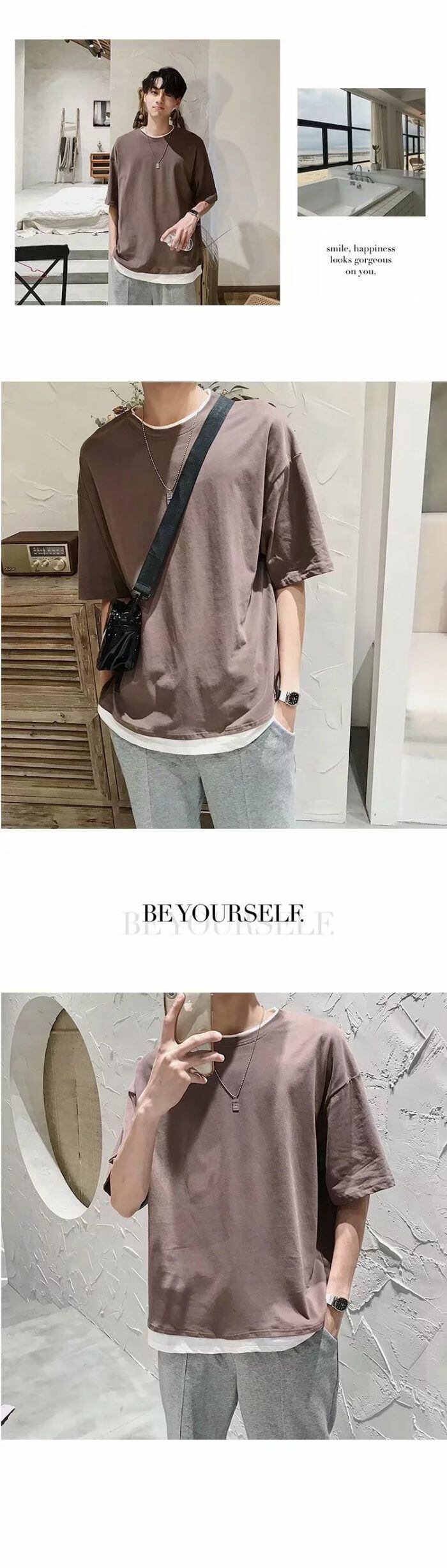 【送料無料】Tシャツ メンズ 半袖 メンズファッション 重ね着風 夏服 涼しい 快適 カジュアル ゆったり トップス ショート丈 柔らかい 通気性 人気 春 夏 おしゃれ 無地 男女兼用 20代 30代 40代 カットソートップス プルオーバー 夏物 父の日 | THE TNK-SHOP
